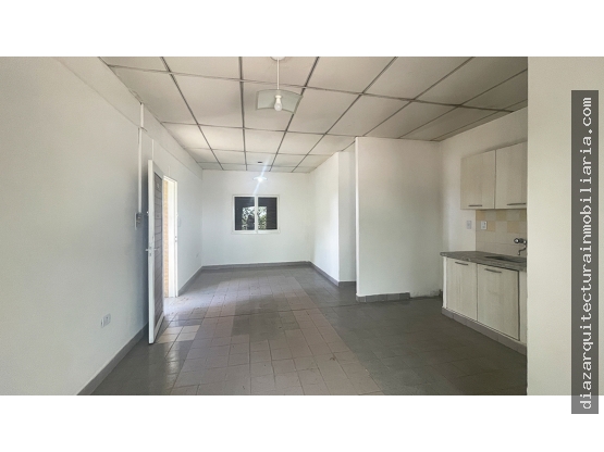 - Living - Comedor - Cocina integrada (Con bajo mesada y Alacena de madera de MDF color claro – Mesada de granito).